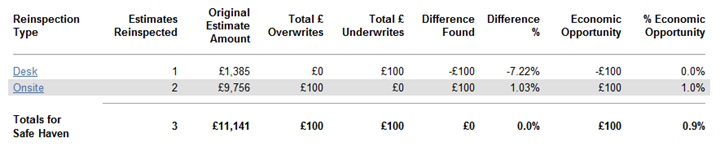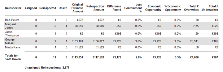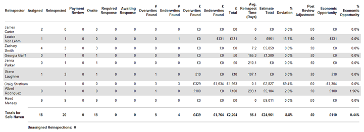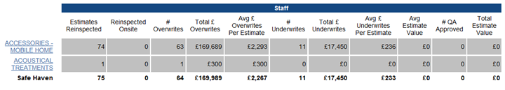 Avg £ Overwrites Per Estimate: Average value of overwrites per estimate (Total £ Overwrites / Estimates Reinspected)