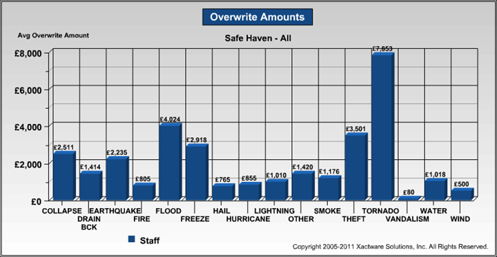 This graph shows the average overwrite pound amounts for the loss cause categories.