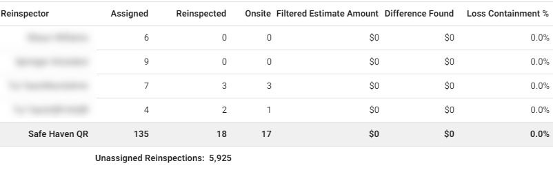 Total Reinspections: Number of estimates completed by the adjuster that have been reinspected