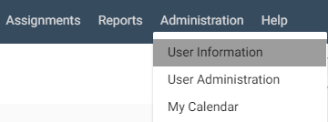 - To access the User Information page, select User Information from the Administration menu. The User Information page appears.
