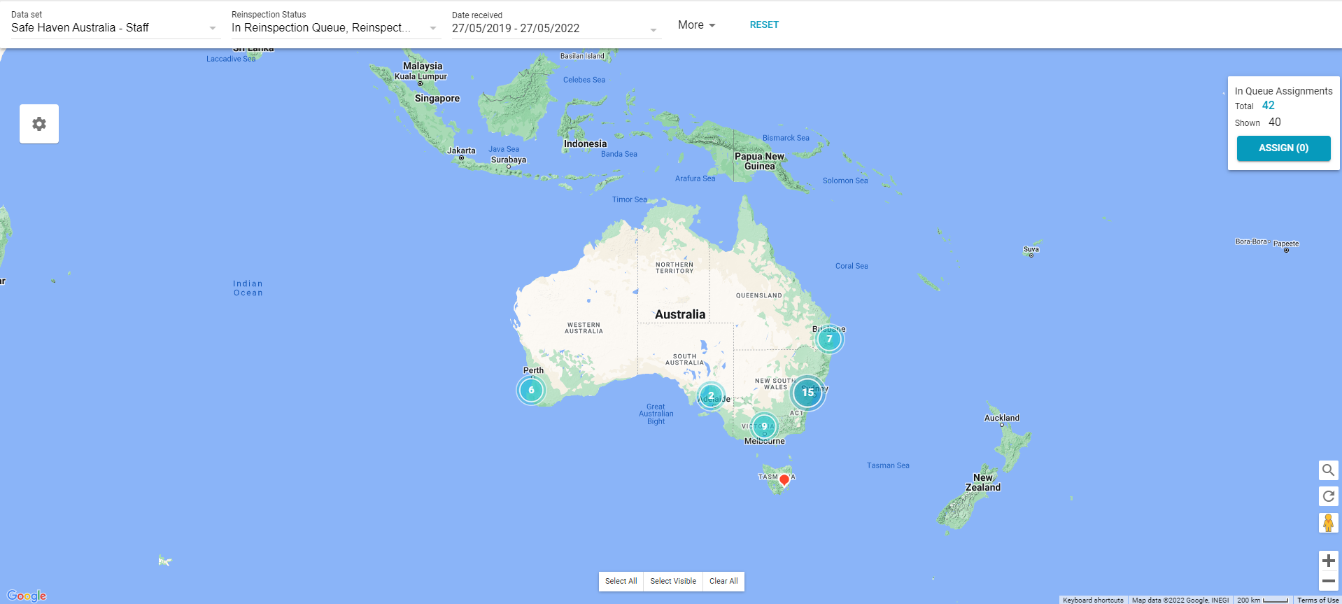 - Select Reinspection Queue Map in the Assignments menu to open the map.