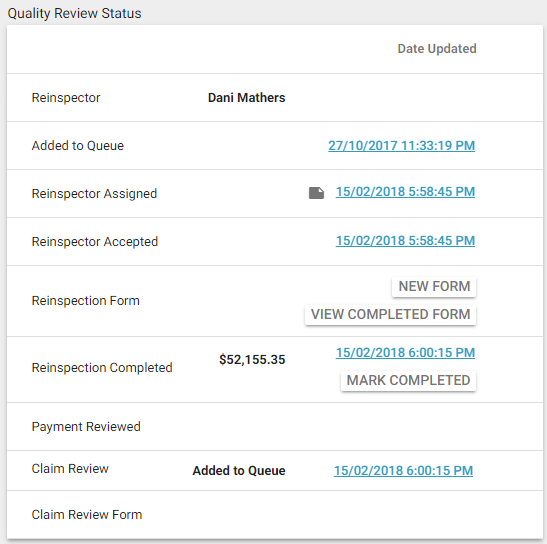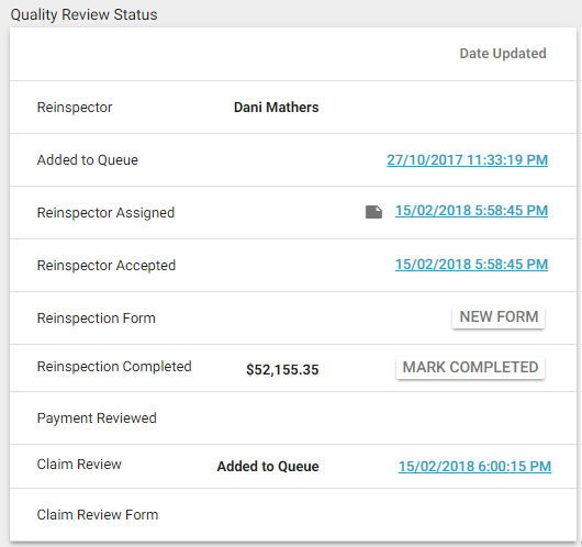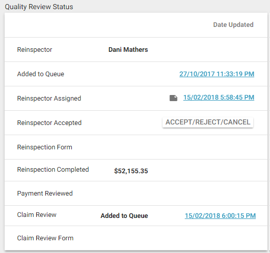 Whether the reinspection was completed through XactAnalysis QR or through Xactimate, the following events occur: