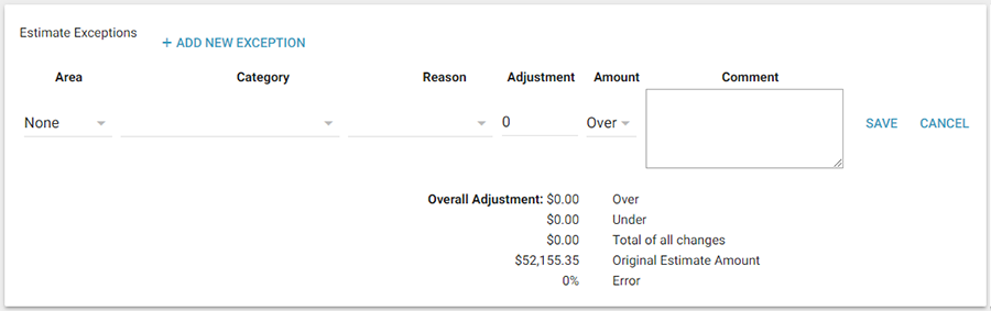 If item prices were reduced, the amount is included in the Total Overwrites because the original estimate was overwritten.