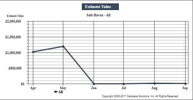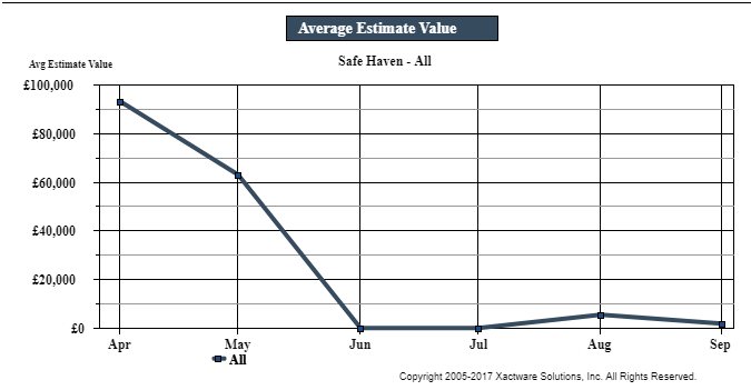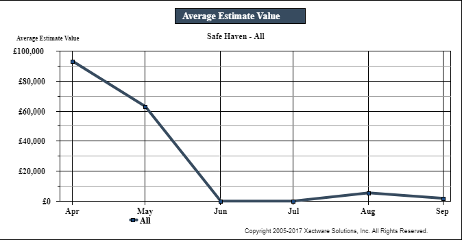 This graph plots the pound value of estimates by month.
