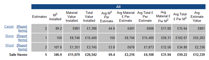 Avg Total £ Per Estimate: Average total flooring cost per estimate (Total Value Installed / Estimates)