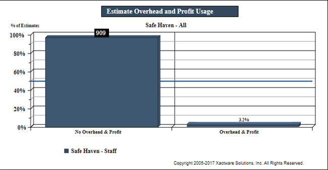 This graph displays the percentage of estimates that have or do not have overhead and profit.
