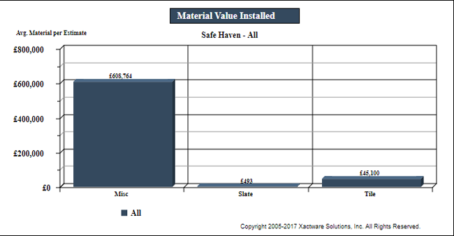 Avg Material £ Per Estimate: Average roofing material cost per estimate (Material Value Installed / Estimates)
