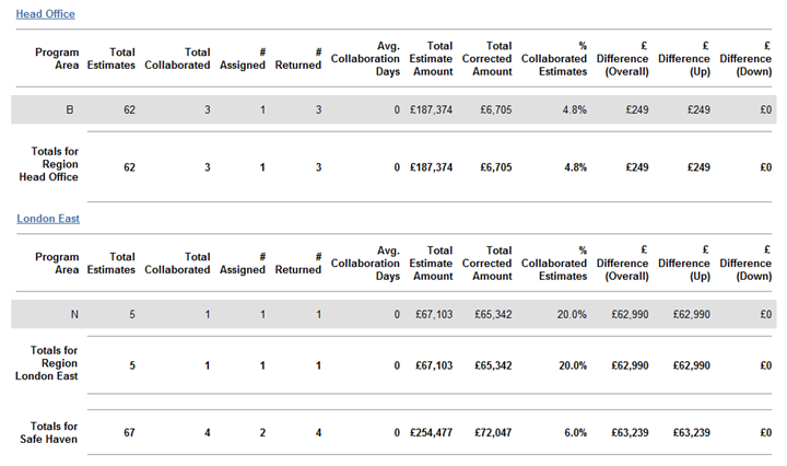 £ Difference (Overall): Difference in value between original estimates and collaborated estimates (last uploaded estimates)