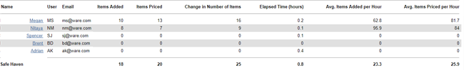Avg. Items Priced per Hour: Average number of items priced per hour