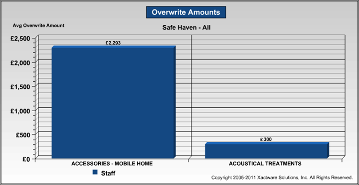 This graph shows the average overwrite pound amounts for the categories that were selected in the Estimate Exceptions section of the Reinspection Form.