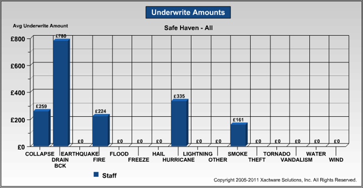 This graph shows the average underwrite pound amounts for the cause of loss categories.