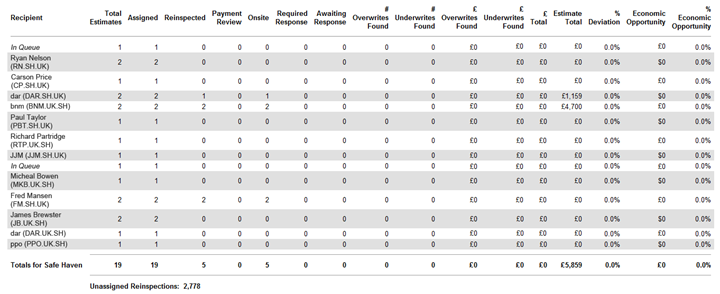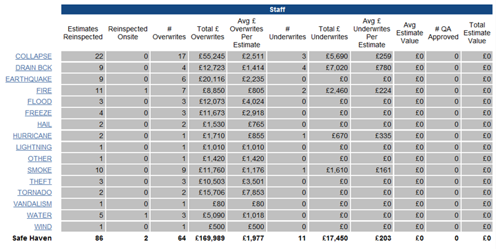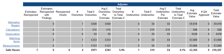 Avg £ Overwrites Per Estimate: Average value of overwrites per estimate (Total £ Overwrites / Estimates Reinspected)