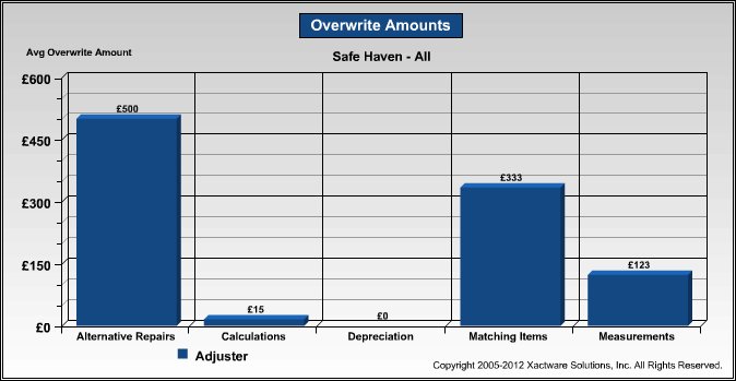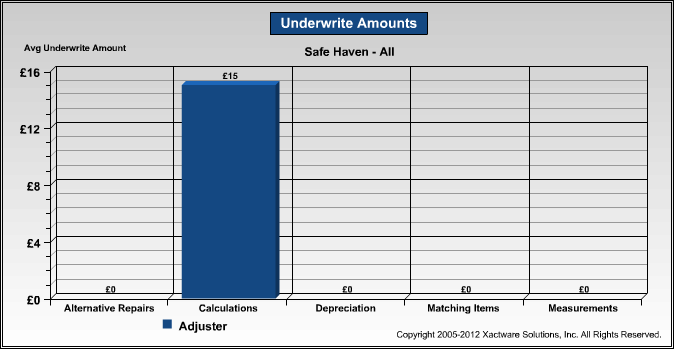 This graph shows the average underwrite pound amounts for the categories that were selected in the Estimate Exceptions section of the Reinspection Form.
