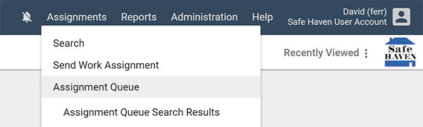- Click the Shown number link in the In Queue Assignments box. The assignments are listed in Search.