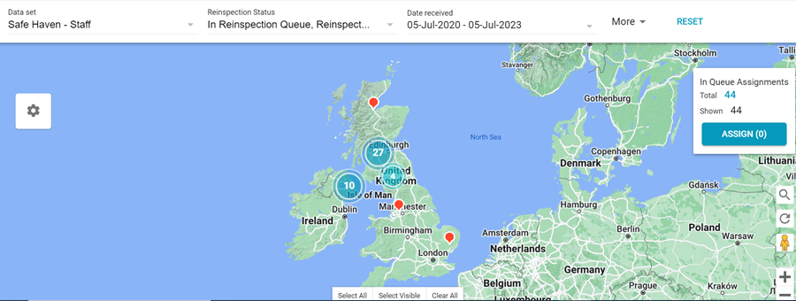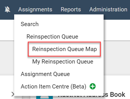 - Select Reinspection Queue Map in the Assignments menu to open the map.