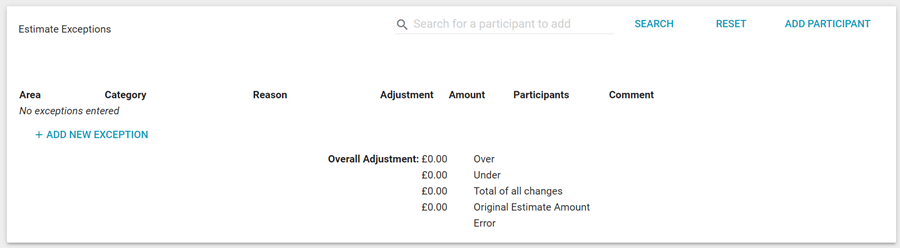 Exceptions are used to log overwrites and underwrites found in the estimate.