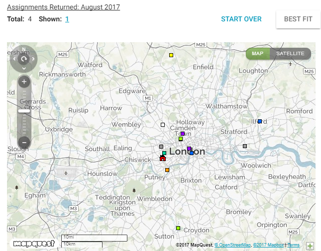 In the Assignment Volume report, you will see a map plotting each assignment’s location.