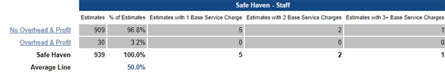 Estimates with 2 Base Service Charges: Number of estimates with two base service charges