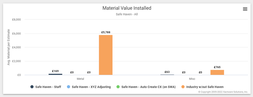 Avg Material £ Per Estimate: Average flooring material cost per estimate (Material Value Installed / Estimates)