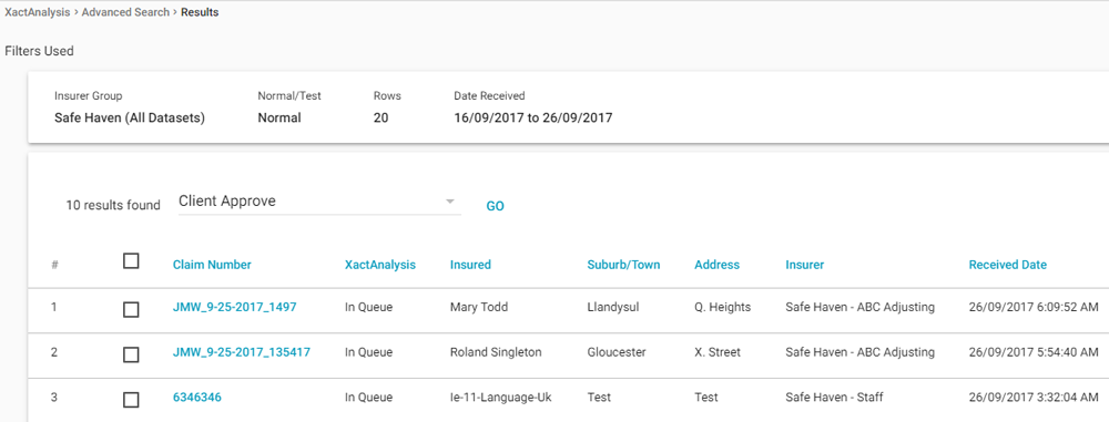 - Click Go. The desk adjuster will be unassigned and their name will be removed from the Desk Adjuster column in Advanced Search Results.