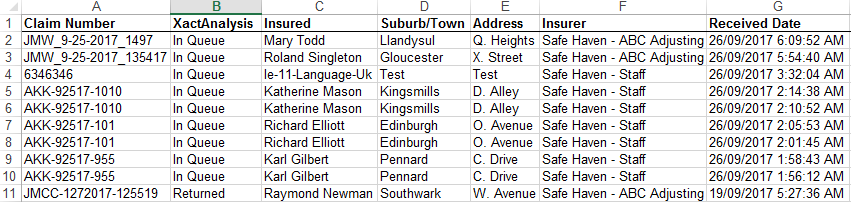 - Click Go. The rows are exported to an Excel spreadsheet.