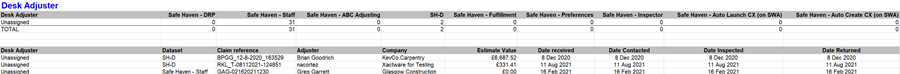 Total Estimates: Total Estimates assigned to this specific adjuster or contractor