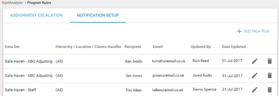 The Program Rules module allows you to set up notifications to inform you of issues with service providers and internal programs. In the Assignment Escalation tab, you set up notifications for assignment escalation issues, and in Notification Setup, you determine exactly who should be notified regarding these issues. You can set up multiple employees to be notified for any location, and you can set up any employee to receive notifications for multiple locations.