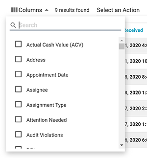 - Select the columns you want to display from the menu. Default columns are grayed out to indicate that they can't be removed.