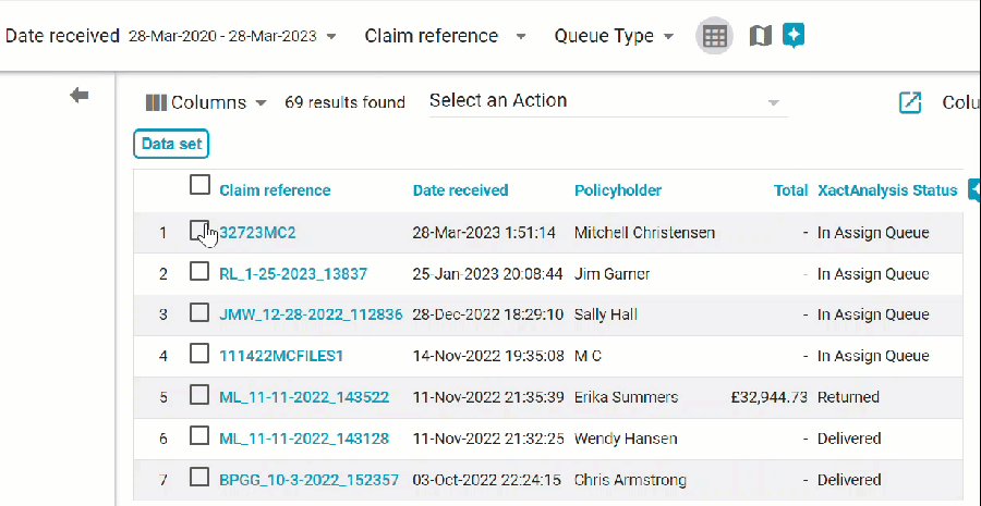 - You can hover over an assignment marker to view its claim reference and the name of its insured. Click on the claim reference to view it in Assignment Detail.