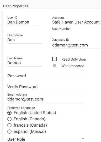 The User ID must be unique across all XactAnalysis® users. You may consider using a company-assigned user number or the company initials followed by the employee initials.