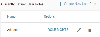 - The user role appears under the Currently Defined User Roles header. Select Role Rights to assign the appropriate rights to this role.