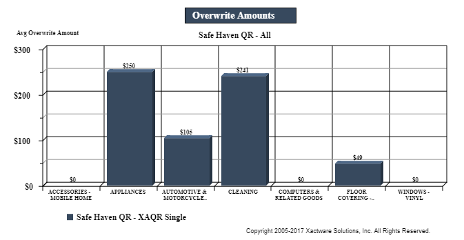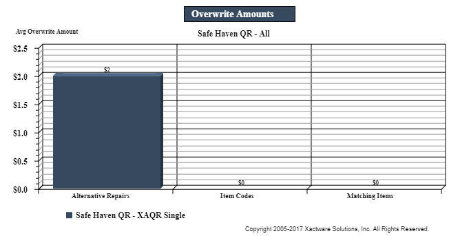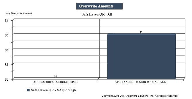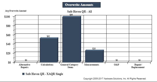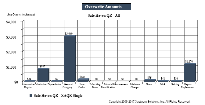This graph shows the average overwrite dollar amounts for the categories that were selected in the Estimate Exceptions section of the Reinspection Form.