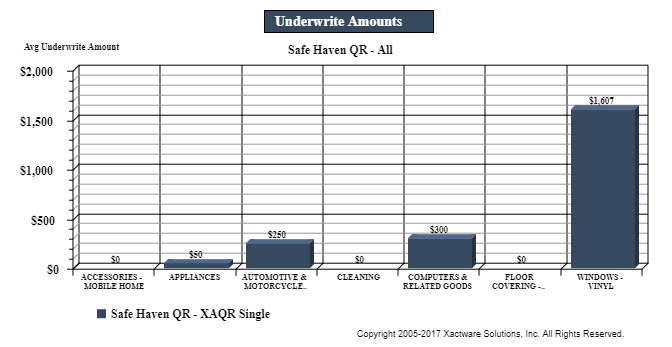 This graph shows the average underwrite dollar amounts for the categories that were selected in the Estimate Exceptions section of the Reinspection Form.