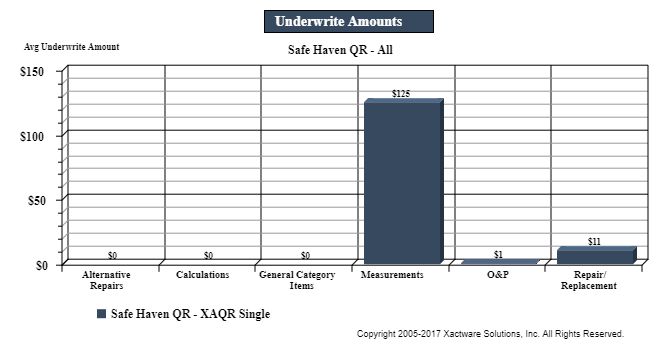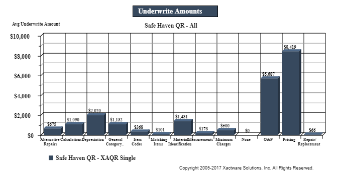 This graph shows the average underwrite dollar amounts for the categories that were selected in the Estimate Exceptions section of the Claim Review Form.