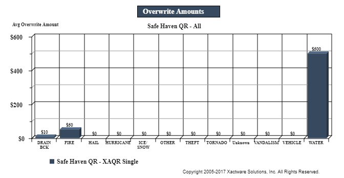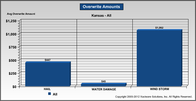 This graph shows the average overwrite dollar amounts for the cause of loss categories.