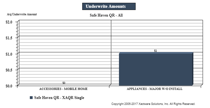 This graph shows the average underwrite dollar amounts for the reasons that were selected in the Estimate Exceptions section of the Reinspection Form.