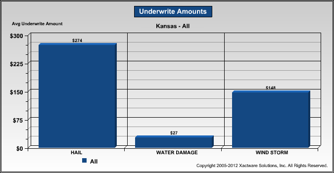 This graph shows the average underwrite dollar amounts for the cause of loss categories.