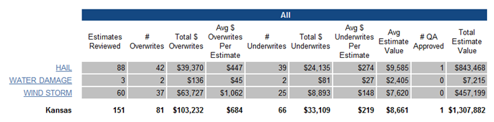 Avg $ Underwrites Per Estimate: Average value of underwrites per estimate (Total $ Underwrites / Estimates Reinspected)