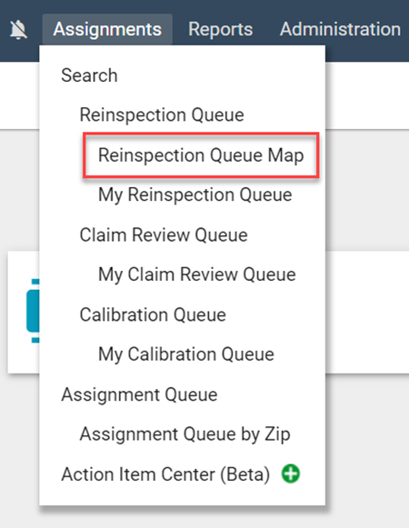 - Select Reinspection Queue Map in the Assignments menu to open the map.
