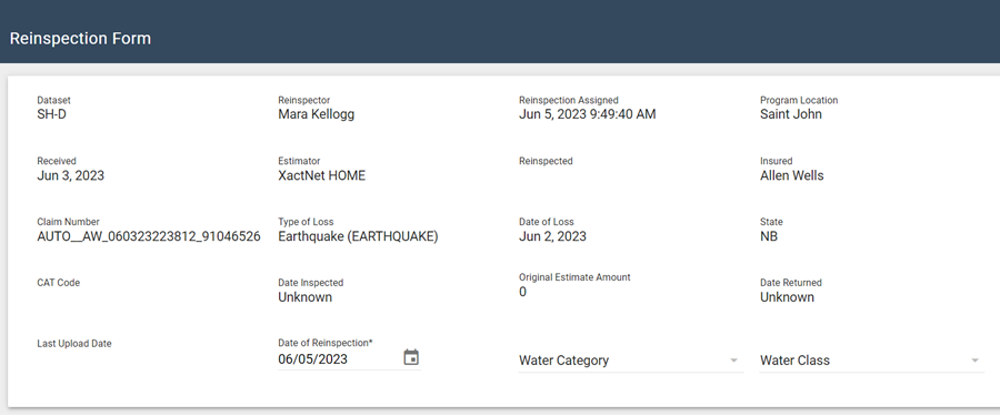 - In the Reinspection Queue or My Reinspection Queue, select an estimate to reinspect. The Assignment Detail page appears.