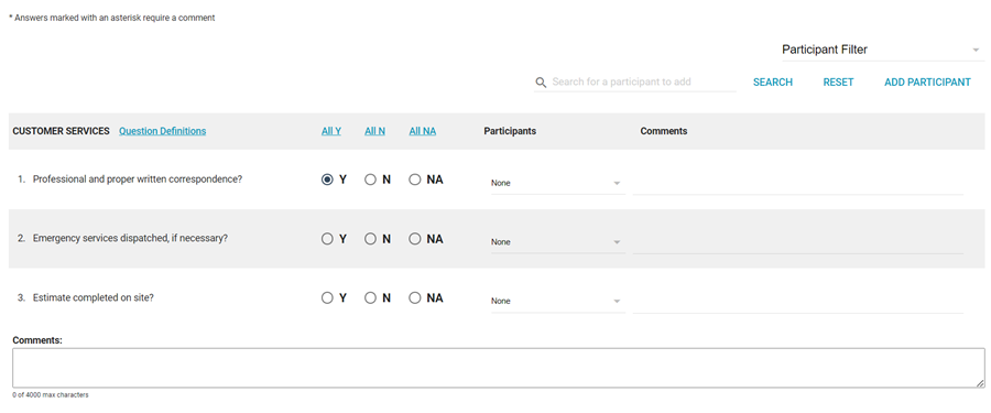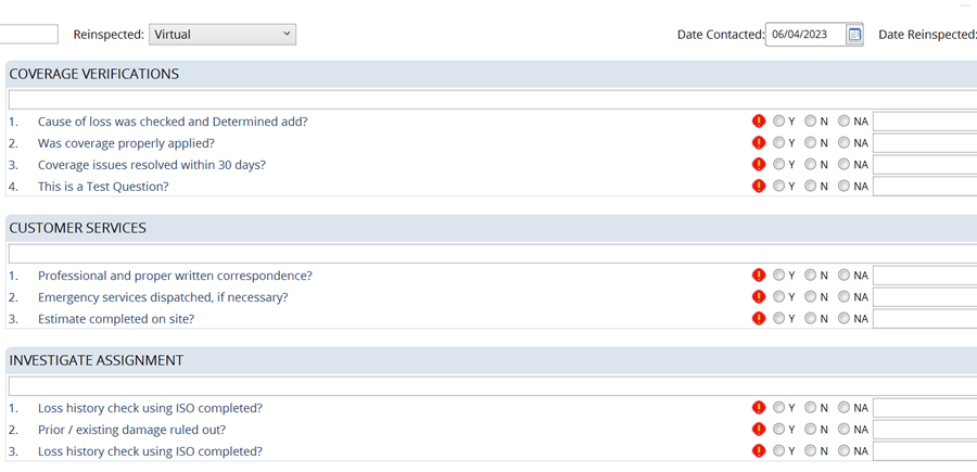 - The reinspection questions appear. Select Yes, No, or Not Applicable (NA). You may comment on sections (if your company’s list is separated by sections) and individual questions.