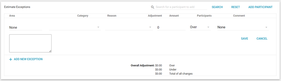 Exceptions are used to log overwrites and underwrites found in the estimate.