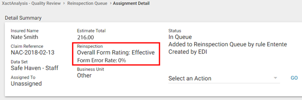 Whether the reinspection was completed through XactAnalysis QR or through Xactimate, the following events occur: