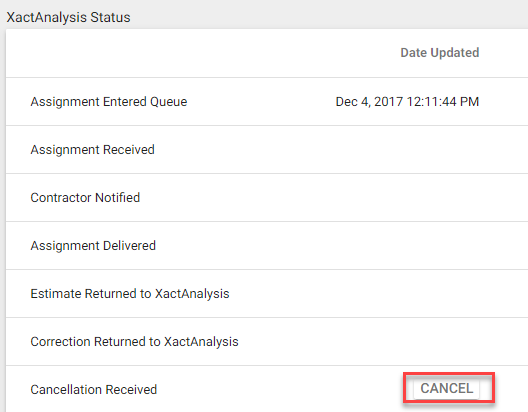 You can only cancel assignments with a status of In Queue, Notified, Delivered, or Rejected.