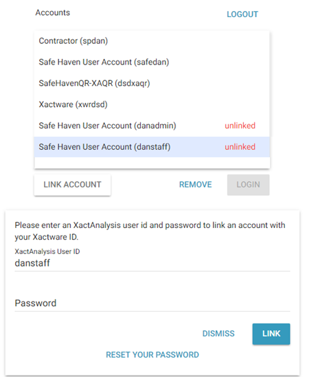 To reset your Xactware ID password, click I forgot my Xactware ID password on the XactAnalysis login page and follow the process to reset your password.