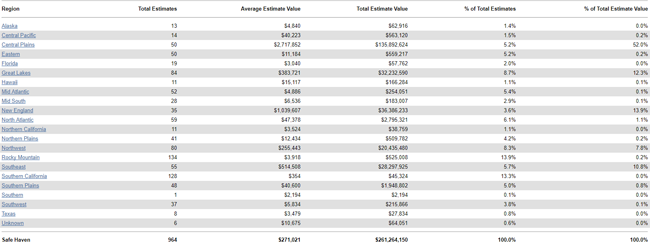 Average Estimate Value: Average value per estimate (Total Estimate Value / Total Estimates)