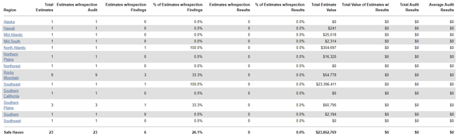 Estimates w/Inspection Audit: Number of estimates with audits/inspections performed