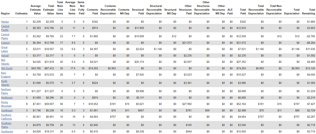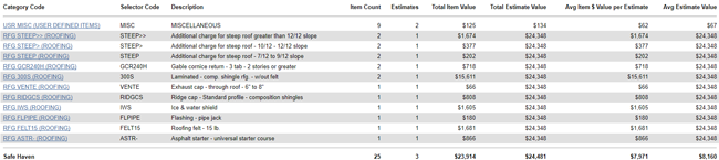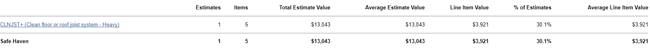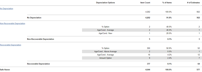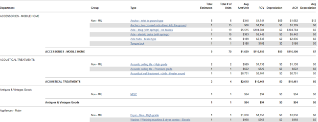 This report compares contents costs (as reported by the insured) to replacement costs (as reported in the estimate by the contractor/adjuster). This information helps you arrive at fair prices for each claim.