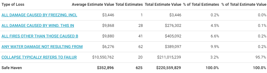 Type of Loss: Type of Loss category (Collapse, Earthquake, etc.)