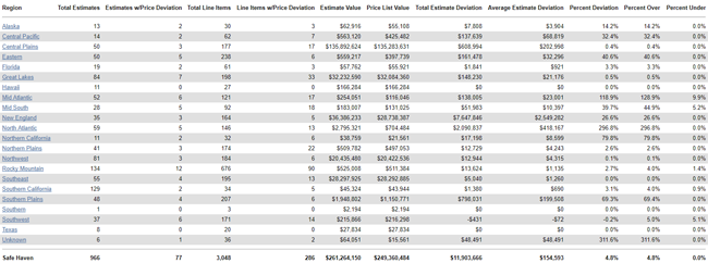 Average Estimate Deviation: Average dollar amount of deviations per estimate (Total Estimate Deviation / by Estimates w/Price Deviation)